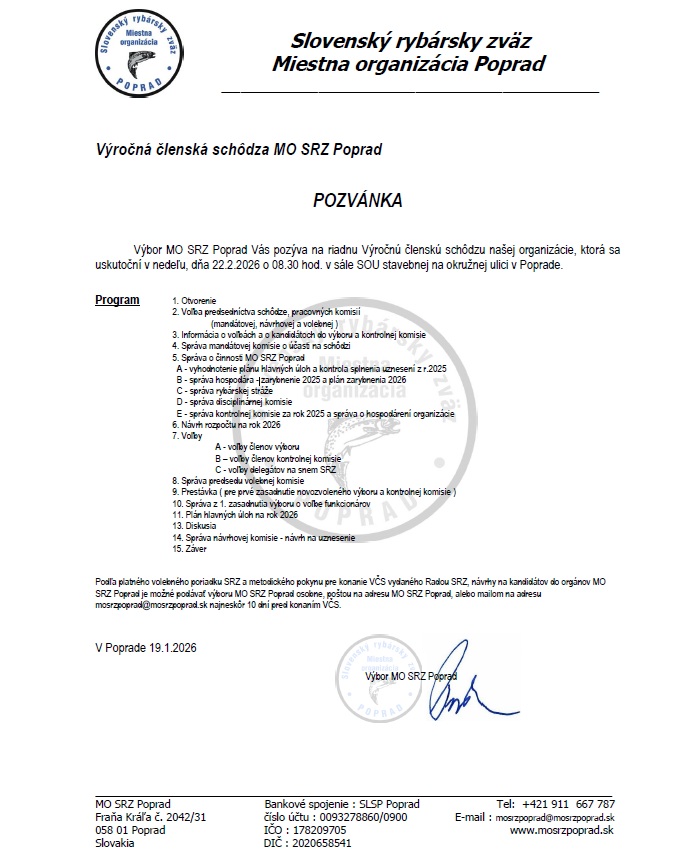 Zverejnené súbory obsahujú dôležité informácie týkajúce sa činnosti organizácie, rybárskych revírov,